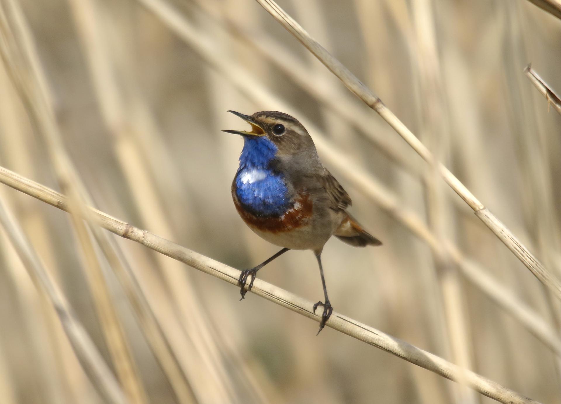 Deze keer een vogel, namelijk de blauwborst. De prachtige blauwborst broedt in Nederland in natte natuurgebieden, bij vennen en langs rivieren. Ze broeden in het aanwezige riet of het elzen- en wilgenstruweel. De blauwborst, die in Afrika en Zuid-Azië overwintert, arriveert jaarlijks in Nederland vanaf maart en trekt in september weer weg. Hij is door zijn uiterlijk met een knalblauwe borst en zijn opvallende staart met oranjerode strepen niet te verwarren met andere moerasvogels. Hij kan zich wel redelijk verstoppen, maar verraadt zich dan door zijn kenmerkende roepje, een ‘tsjak’ dat doet denken aan touw dat tegen een vlaggenmast slaat. Maar hij heeft ook een liedje dat kenmerkend vanuit één herhaalde toon overgaat in een stortvloed van allerlei zanggeluidjes. In Waverhoek is hij nu al in het voorjaar goed waar te nemen. Zodra het riet zich ontwikkelt in Marickenland, verwachten we dat de blauwborst zich hier ook snel zal laten zien.